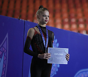 Варвара Топорова стала чемпионкой в упражнениях с обручем, набрав 28,950 балла, с лентой (27,600), серебряным призером в упражнениях с мячом (24,550) и булавой (26,900) и в общекомандном зачете.